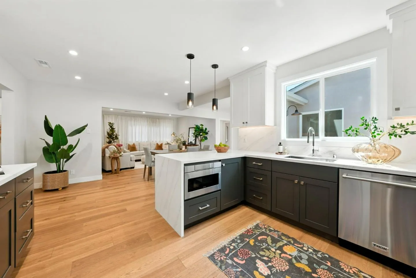 Experience refined single-level living in this beautifully designer-renovated 5-bedroom, 4.5-bath San Mateo home, ideally situated on a quiet street in a top-notch location. Enjoy peace of mind with a new roof, fully owned solar, dual-pane windows, updated plumbing, smart LED lighting, smart HVAC, and tankless water heaters. The open floor plan blends the gourmet kitchen, dining, and living areas into a bright, inviting space perfect for relaxed living and stylish entertaining. The chef's kitchen features Thor appliances, custom cabinetry, quartz counters, and a generous island, all set against gleaming hardwood floors. Two private primary suites and a stair-free design provide comfort and ease. Step into the expansive backyard rarely found on an extra-large San Mateo block, featuring lush drought-resistant landscaping, LED lighting, a pergola, and a cozy fire pit, creating an ideal setting for outdoor gatherings or quiet evenings. A detached Bonus Accessory unit with its own bath offers versatility as an office, gym, or guest retreat. With parks, shopping, and top schools within walking distance plus easy access to 101, 280, and 92 this home delivers lifestyle, efficiency, and unmatched convenience.