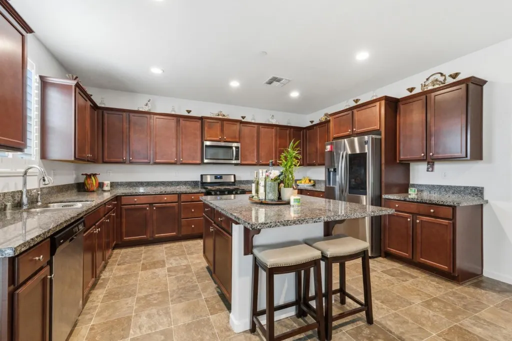 Welcome to a spacious 5-bedroom, 4-bathroom home with a loft in the vibrant city of Fresno, offering over 3,000 sq ft of comfortable living space. Located in the Central Unified School District, this home is perfect for a growing family. The kitchen is a cook's delight, featuring elegant granite countertops, providing both style and functionality for all your culinary needs. The home boasts a mix of carpet and tile flooring that adds to its charm and practicality. Relax in the separate family room or enjoy meals in the dining area that is seamlessly integrated into the family room space. With multiple primary bedrooms, including a ground floor option, privacy and comfort are assured. The bathrooms offer modern amenities, including double sinks, oversized tubs, and stall showers, with some located conveniently on the ground floor. Stay cozy with the fireplace and cool with ceiling fans available throughout. Additional features include a 3-car garage and an inside laundry area, enhancing convenience and storage options. Experience comfortable living in Fresno with this exceptional home.