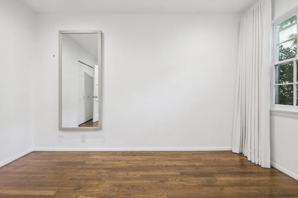 Sunlight filters through classic multi-pane windows to brighten the living area finished with warm wood floors and crisp white walls in this Santa Monica home. Moving into the kitchen, youll find thoughtfully chosen cabinetry in a soft wood tone paired with spacious counters and top-tier appliances, including a Bosch induction electric range. The layout is efficient and well organized, and in-unit laundry sits neatly within the room. A dining area just outside the kitchen offers a pleasant setting. Your bedroom provides a restful retreat with generous space for furniture placement and a window. A full bathroom with a tub and shower combination supports both simple routines and end-of-day unwinding, rounding out a practical and welcoming layout. Convenient parking on the street up front! Living here places you in a wonderful Santa Monica neighborhood. Nestled north of Wilshire, this home sits in a quiet pocket that still keeps you close to the beach, downtown LA, and everyday essentials. Youre just blocks from Montana Avenue, Tartine, Erewhon, Whole Foods, and dining choices that make this part of the city so enjoyable. Whether you value walkability, coastal air, or quick access to urban conveniences, this location offers a well-balanced mix of all three.