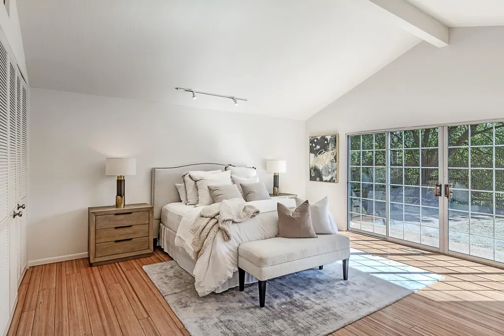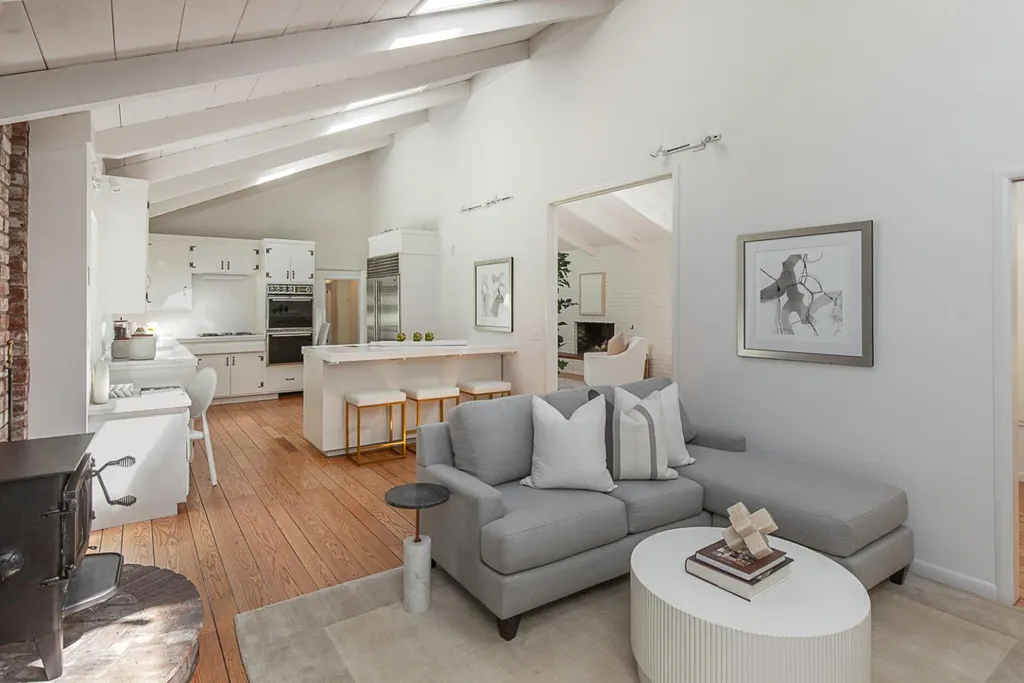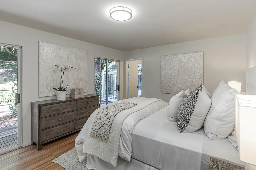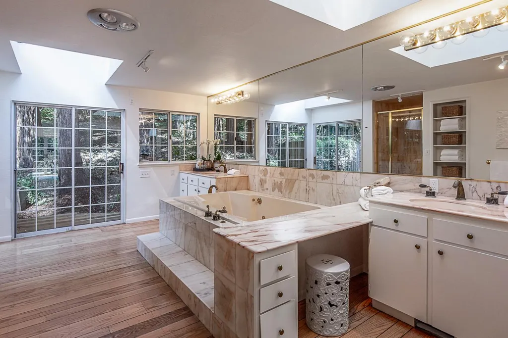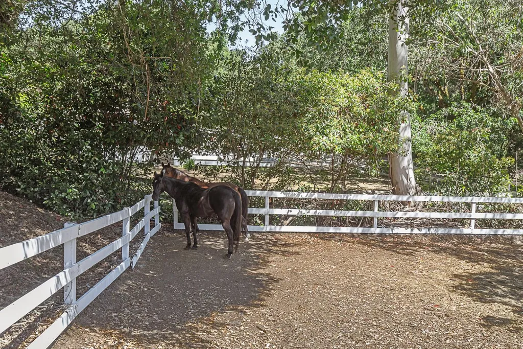 This light-filled country home in the heart of central Woodside, on just over one acre, is privately positioned at the top of a gentle knoll beyond picturesque equestrian facilities. Inside, every room opens to the outdoors through sliding glass doors with views of surrounding redwoods. Formal living room features fireplace & opens to expansive front terrace, while the adjoining formal dining room connects to the rear grounds. Bright & light kitchen with breakfast bar seating opens to the inviting family room with a charming wood stove &access to the rear patio. Separate bedroom wing is arranged for privacy & guest suite with solarium tub that takes full advantage of the redwood views. Luxurious primary suite has access to both front & rear grounds, extensive customized closet space, plus a spa-inspired marble bath with vanities, jetted tub & shower. Equestrian amenities include a 3-stall barn with tack room & white fenced corral amid sun-swept open grounds and perimeter redwoods. An attached 3-car garage & adjoining large covered workshop complete the offering. Located just 1.5 miles from Woodside town center and with access to acclaimed Woodside School, this is a special opportunity to enjoy the best of country living in a premier location.