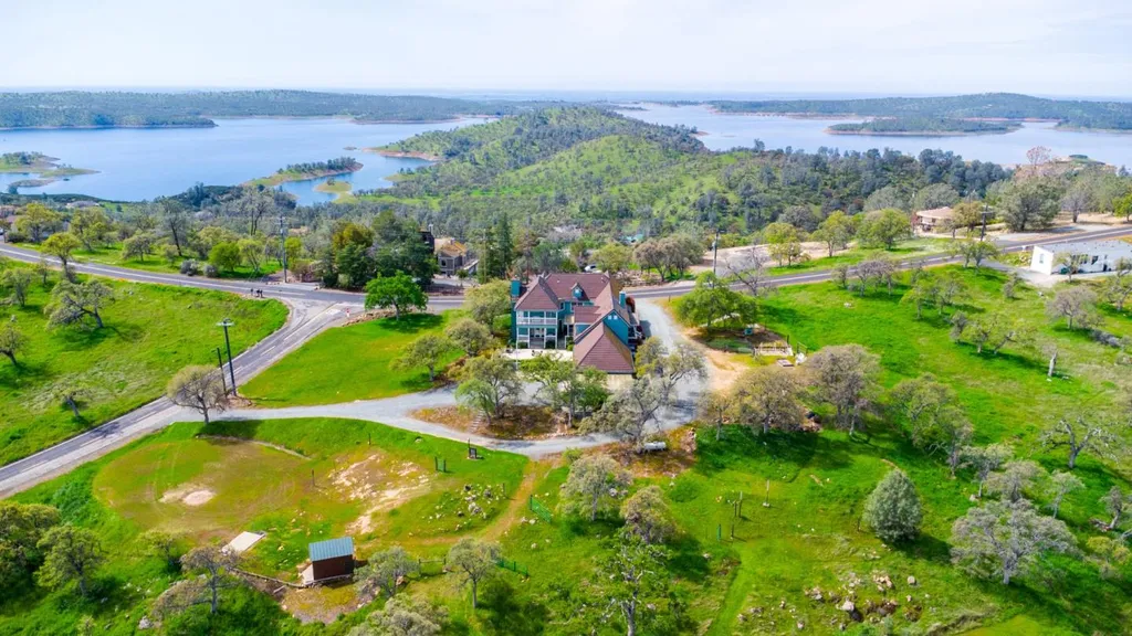 Luxury Estate with Unmatched 360 Views!! Perched atop a private 3.4 acre ridge, this exceptional 4,749 sq. ft. residence offers panoramic views of Lake Don Pedro and the mountains-sunrise to sunset. A perfect blend of upscale design and country charm, the home features five spacious bedrooms, including four ensuites and an office. A luxurious primary suite with a private deck overlooking the mountains. In total: four full bathrooms and one half-bath. Enjoy seamless indoor-outdoor living with expansive patios, your own private campground, a horse arena, two-acre fenced pasture, and tack room. After a day at nearby Lake Don Pedro or Lake McClure, rinse off in the outdoor shower and store your boat under the dedicated covered area. Both boat launch ramps are only 10 minutes away. The oversized 2-car garage offers a workshop, 12-foot ceilings and abundant storage space. Tons of extra parking on the property. Fire-safe with a cement tile roof, dual street access, and an on-site hydrant. Located just minutes from the HOA clubhouse, where you'll enjoy access to a pool, fitness center, and more. Only 1 hour to Yosemite and 2.5 hours to the Bay Area, this one-of-a-kind property is ideal as a full-time residence or a high-end retreat. A rare offering, schedule your private tour today