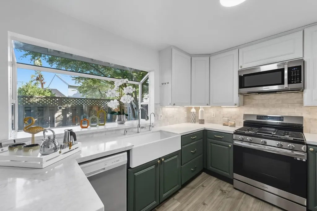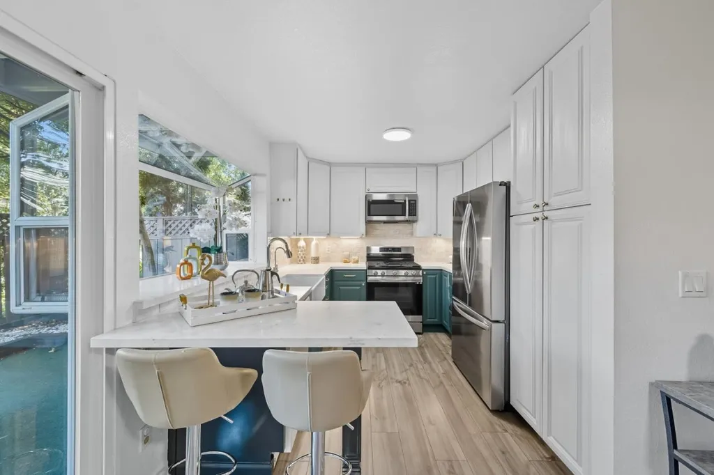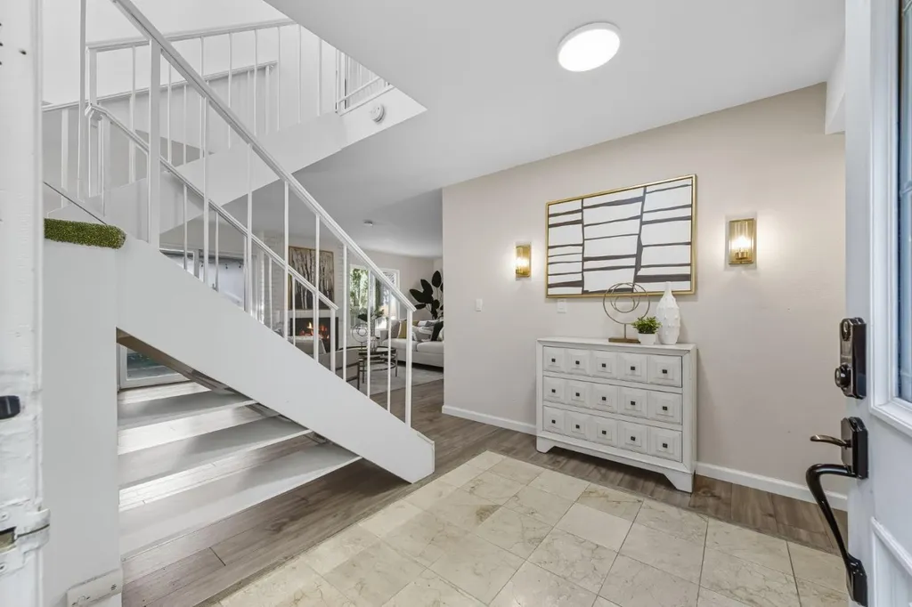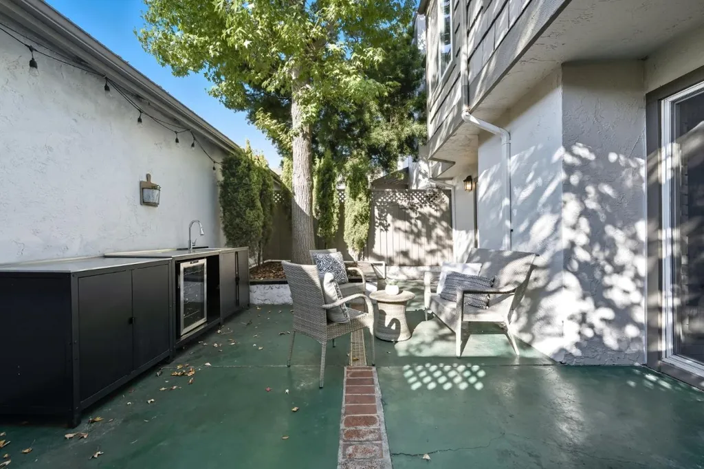 Winston Square is one of Foster City's most open and charming developments that is spaciously laid out with abundant trees and open spaces. This 4-bdrm/2.5-ba end unit home has a convenient floor plan with two patios that flow from the common areas to allow ample space for enjoyment. The main living/dining areas are open and spacious, with warm wood/vinyl plank floors, a convenient wet bar, and expansive sliding doors to both front & back patio. The kitchen is refreshed with newer countertop-backsplash, and extended modern peninsula and is bathed in natural light. Upstairs, the primary suite boasts a gorgeous walk-out balcony, a spacious en-suite with a walk-in shower, and a large walk-in closet. Three additional bedrooms, hallway skylights, and a separate laundry room offer comfort and convenience.. With its wonderful location (within a stone's throw of Beach Park Elementary School:-)), luminous interiors, and delightful entertaining spaces, this Foster City home inspires a lifestyle of casual California living at its best. Low HOA - only $275/month. Pools, kids playgrounds, and clubhouse.
